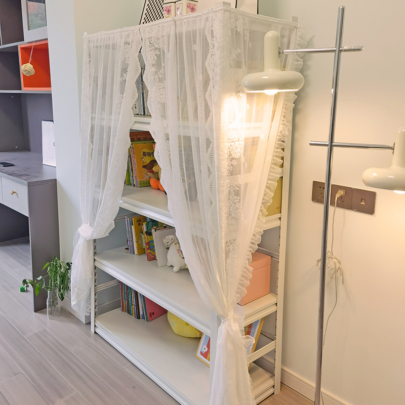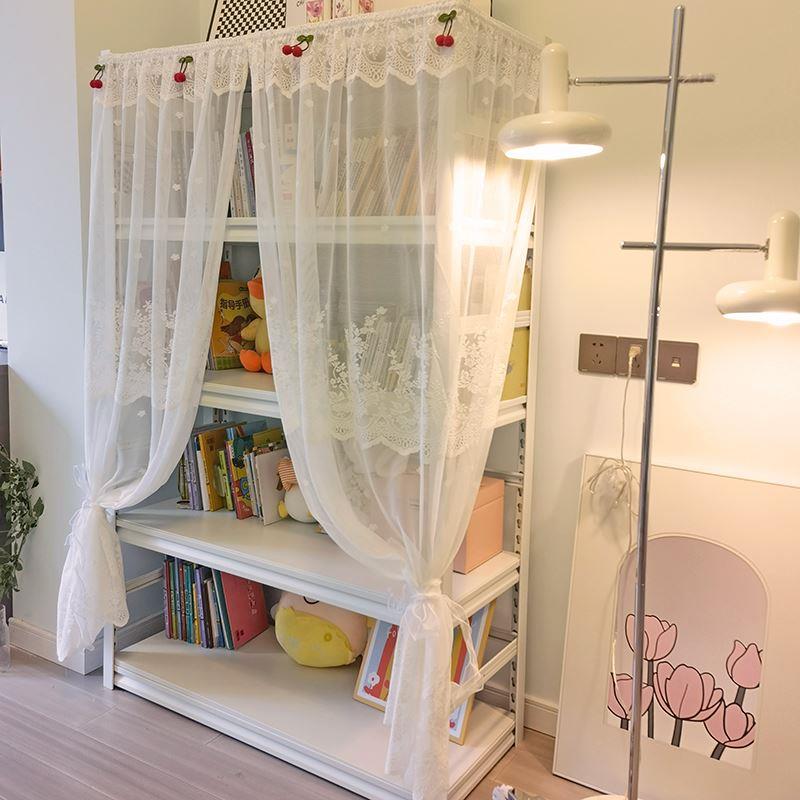 简易少女法式蕾丝遮挡帘置物架铁架免打孔防尘帘门帘魔术贴自粘