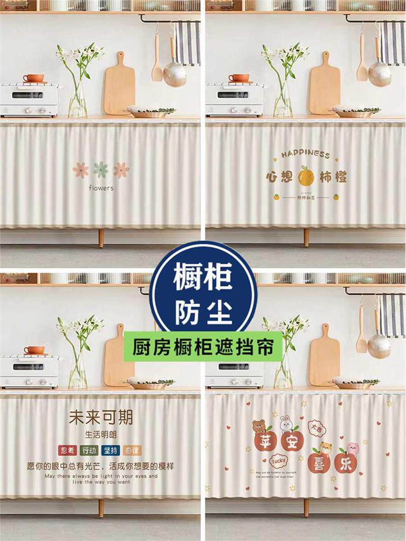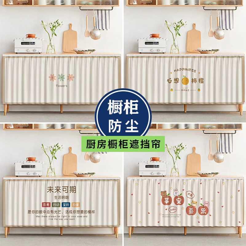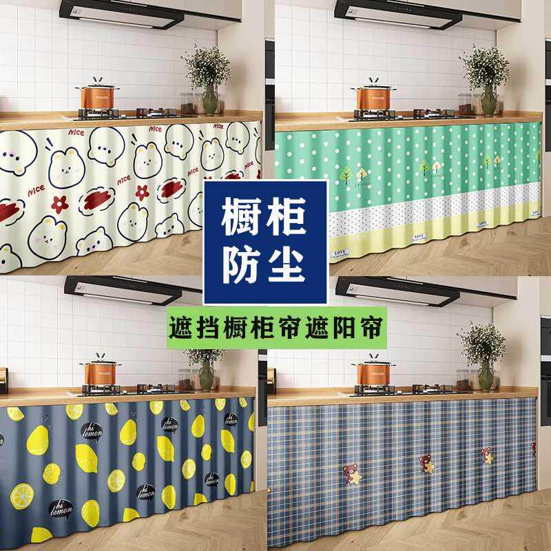 橱柜遮挡帘柜门帘柜子挡帘布厨房免打孔滑轨柜帘防尘挡风遮丑帘子