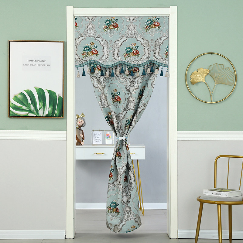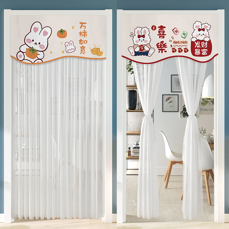北欧ins风门帘卧室防蚊虫免打孔对开纱帘蕾丝门帘印花装饰隔断帘
