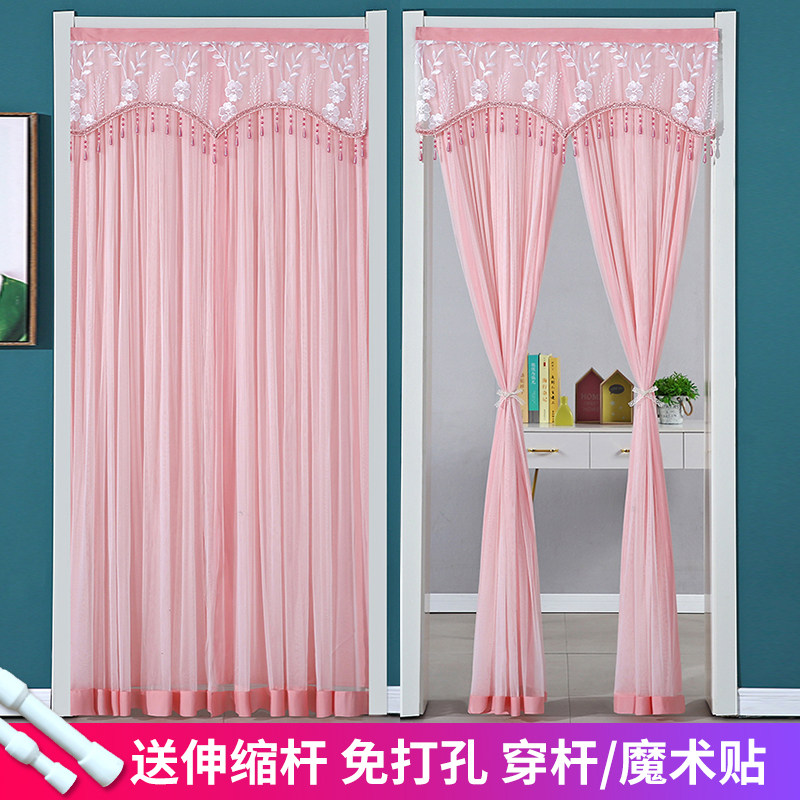 家用免打孔门帘卧室防蚊虫对开纱帘蕾丝门帘ins风卫生间隔断纱帘