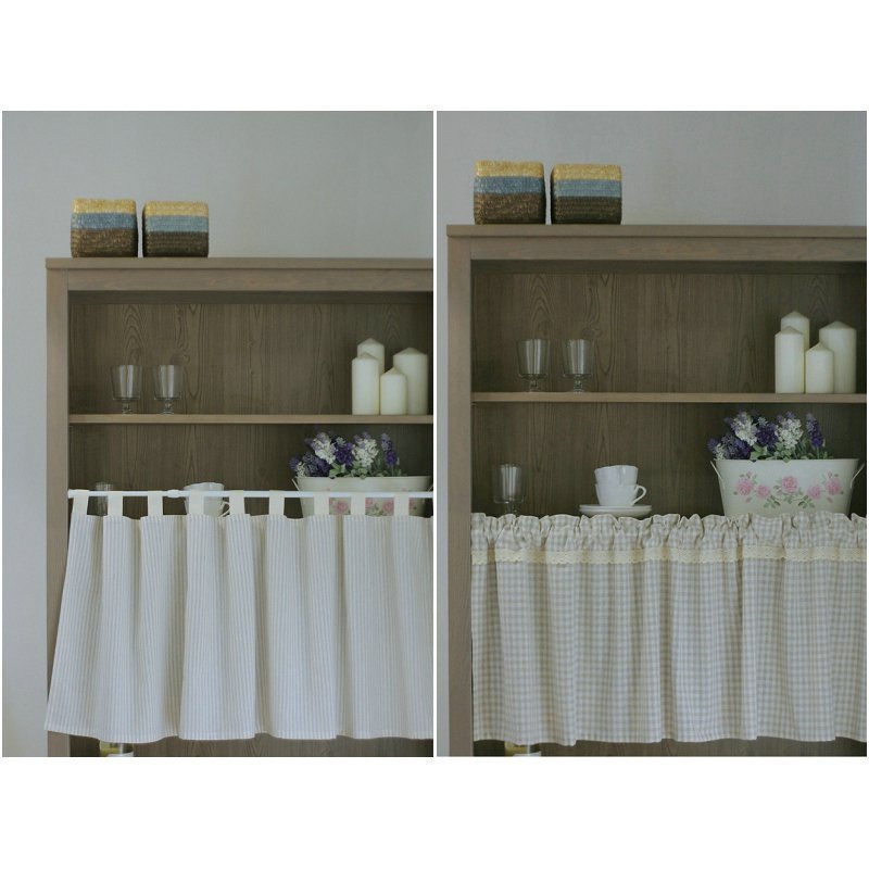 白色绣花纱半帘遮挡帘防尘帘遮挡帘柜帘小门帘短帘酒柜书柜遮尘帘