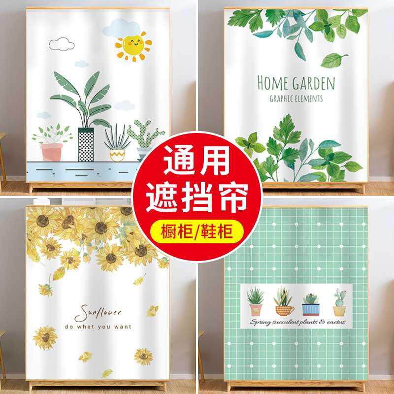 柜子遮挡帘厨房免打孔门帘橱柜衣柜防尘帘子置物架遮丑帘免打孔