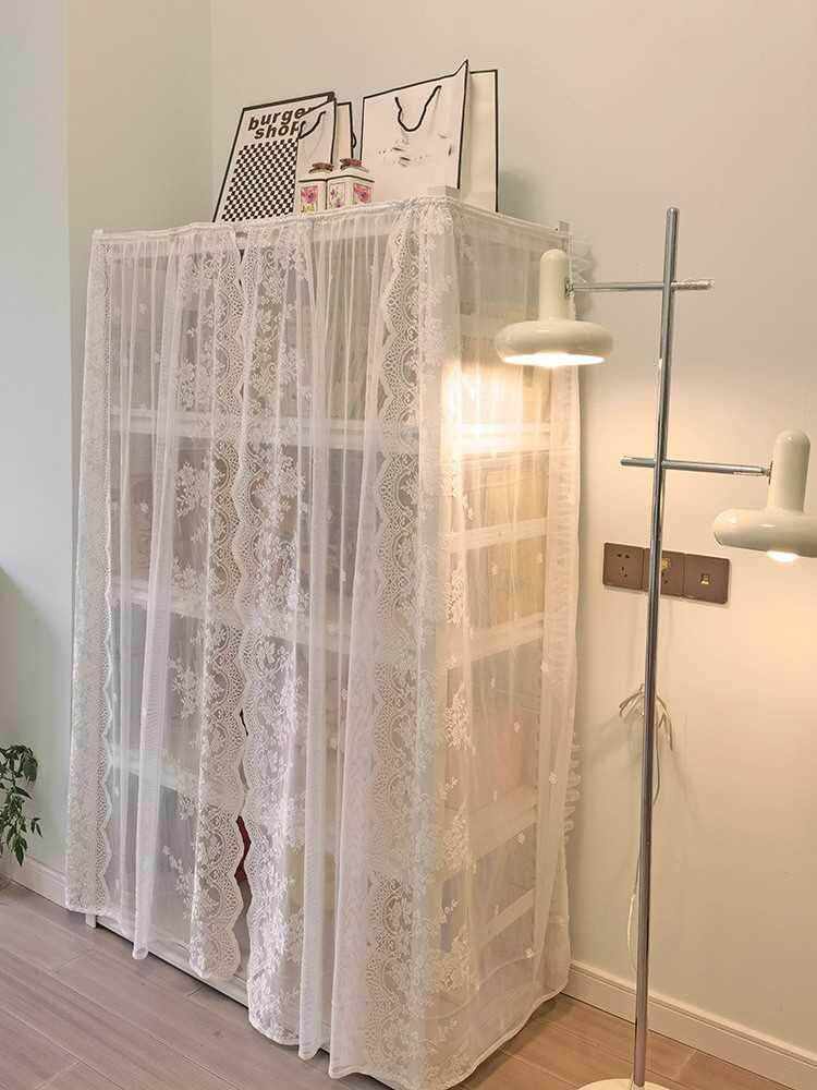 法式窗帘魔术贴门帘蕾丝防尘帘纱帘遮丑帘书架鞋架货架隔断遮挡帘