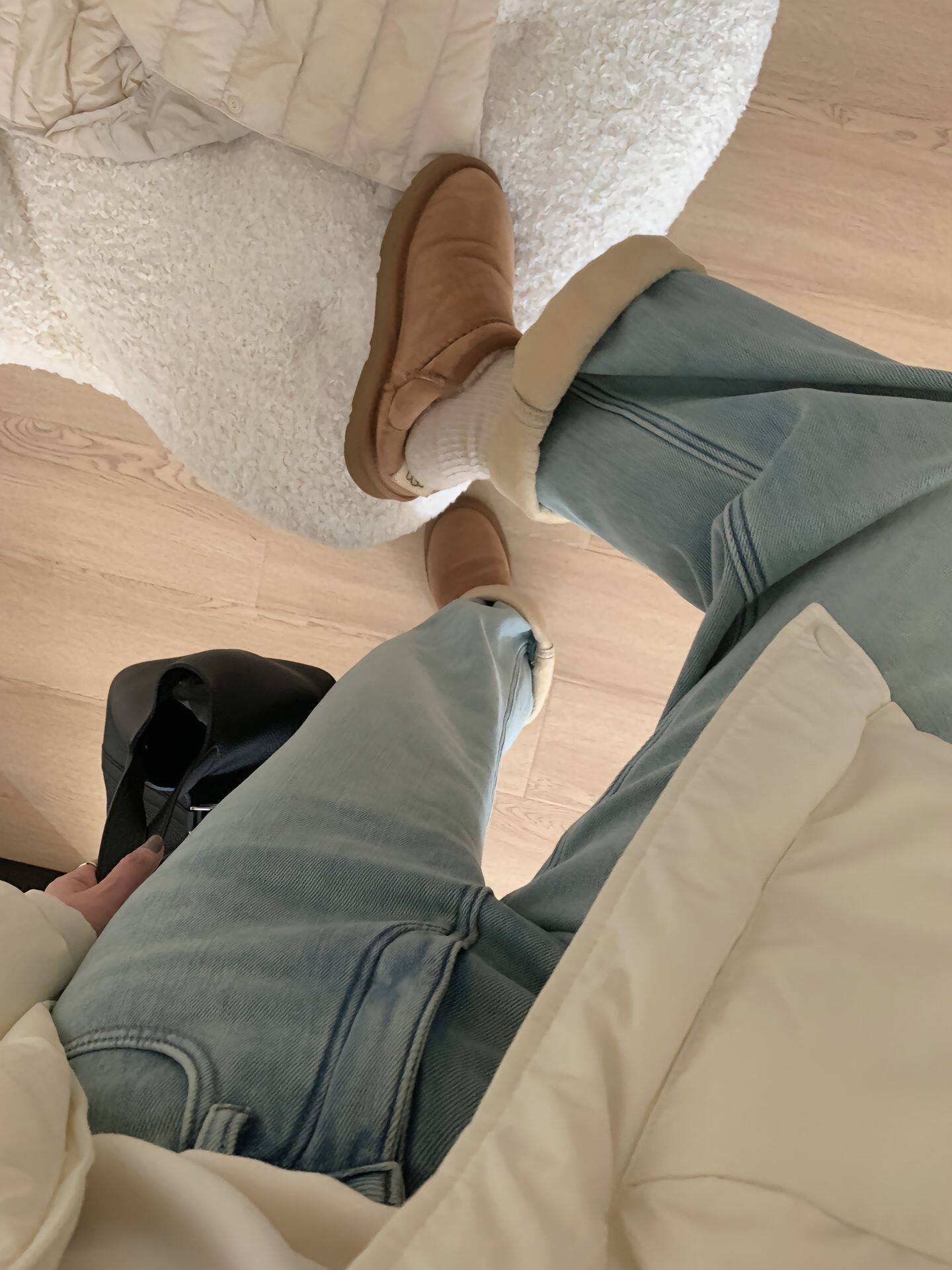 蓝灰色加绒牛仔裤女春季新款胖妹妹mm高腰宽松显瘦直筒阔腿长裤子