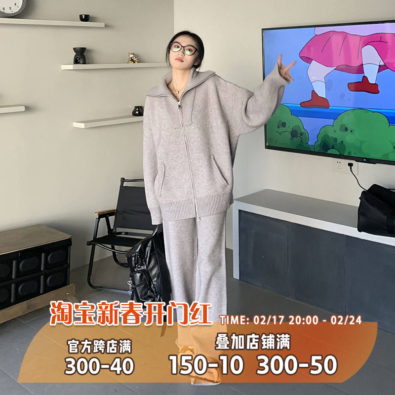 橘子树在哪儿韩系毛衣阔腿裤套装女秋宽松休闲温柔针织慵懒两件套