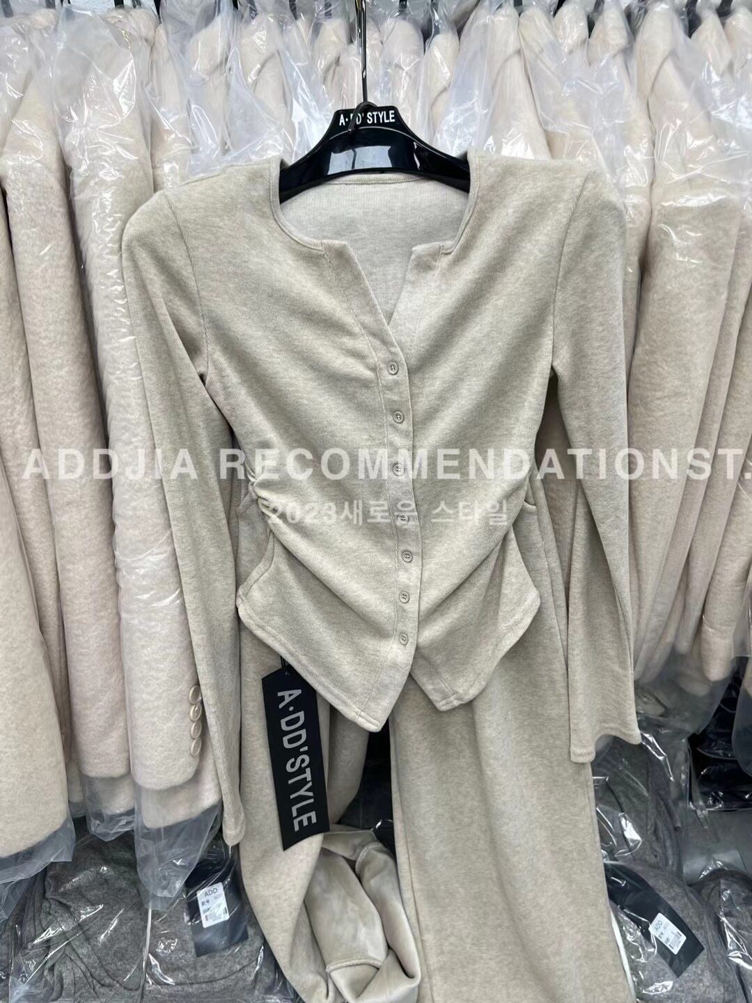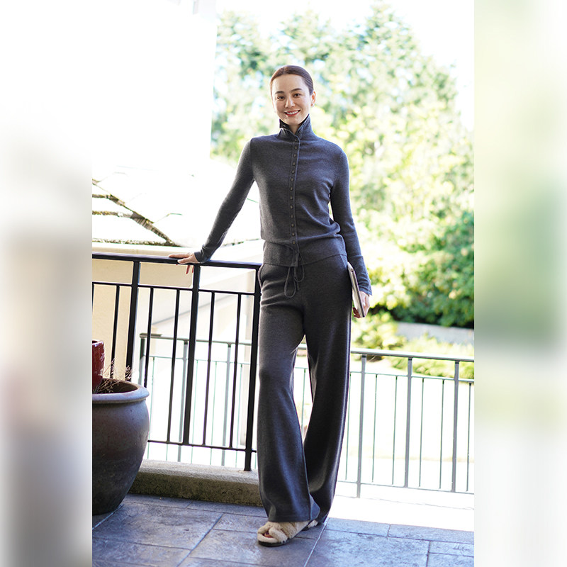 WinnieTang重工16针48s/2新奥100%精纺羊毛套装 休闲开衫+阔腿裤