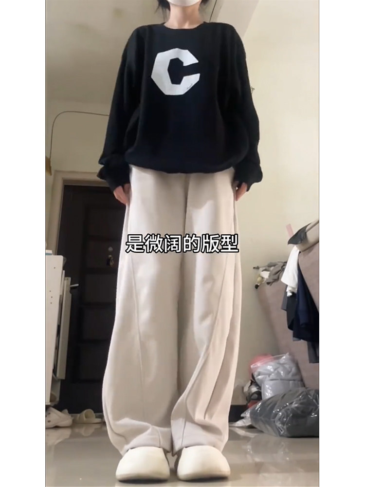 米白色镰刀裤女2024新款春季大码梨形身材遮胯显瘦阔腿直筒运动裤