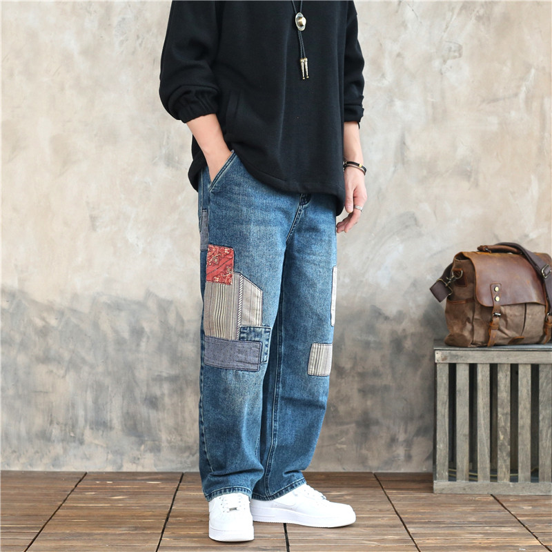 复古牛仔裤男士直筒宽松大码春秋美式阔腿休闲裤加肥加大锥形裤子