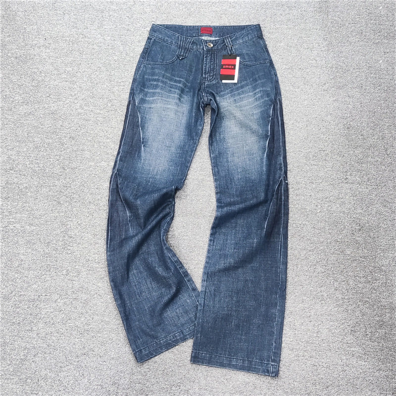 韩单撤柜夏季男装中腰宽松百搭休闲裤 复古直筒阔腿牛仔长裤棉 夏