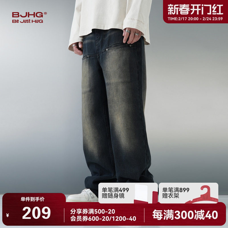BJHG不计后果 vintage牛仔裤男女款春季新款美式直筒宽松阔腿裤子