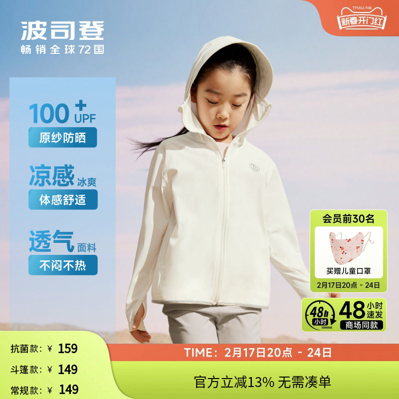 森马集团棉致儿童防晒衣女童夏季防晒服冰丝薄款防紫外线大童外套