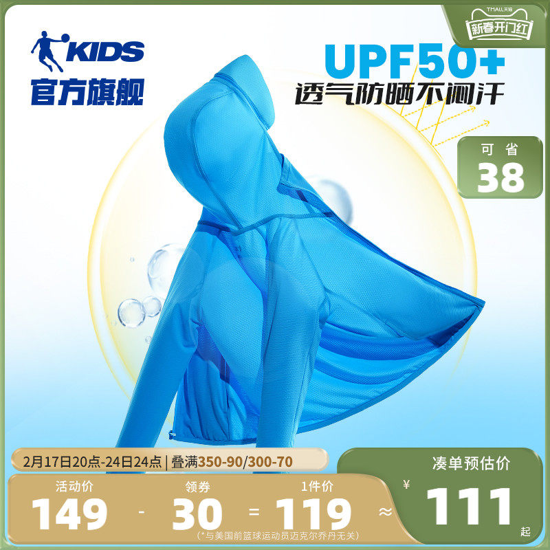 中国乔丹童装儿童防晒衣2023新款男童夏季薄款外套皮肤衣防晒服女