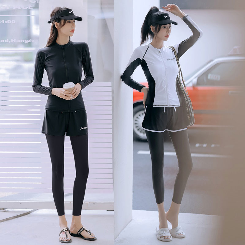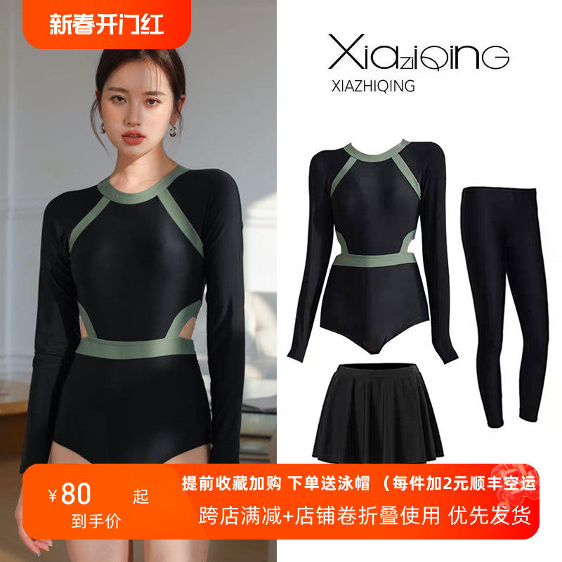 韩国ins分体泳衣女遮肚显瘦小胸2021新款黑色长袖学生防晒游泳装