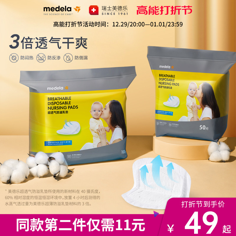 美德乐超透气防溢乳垫全新材料3倍透气干爽轻薄隐形不含荧光50片