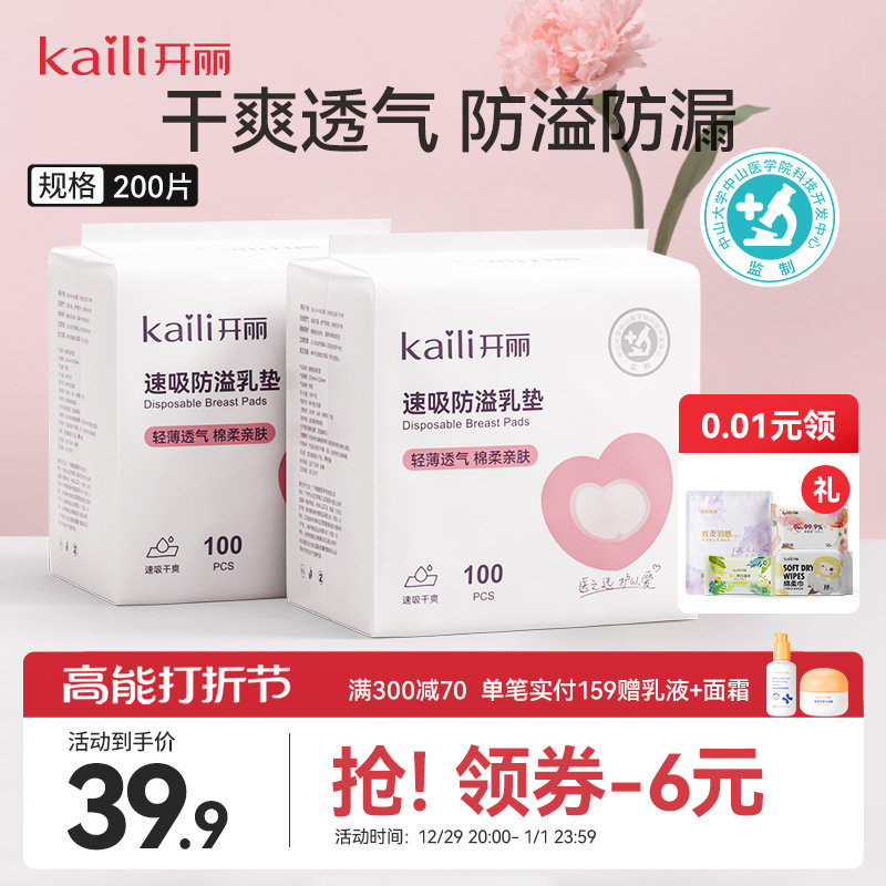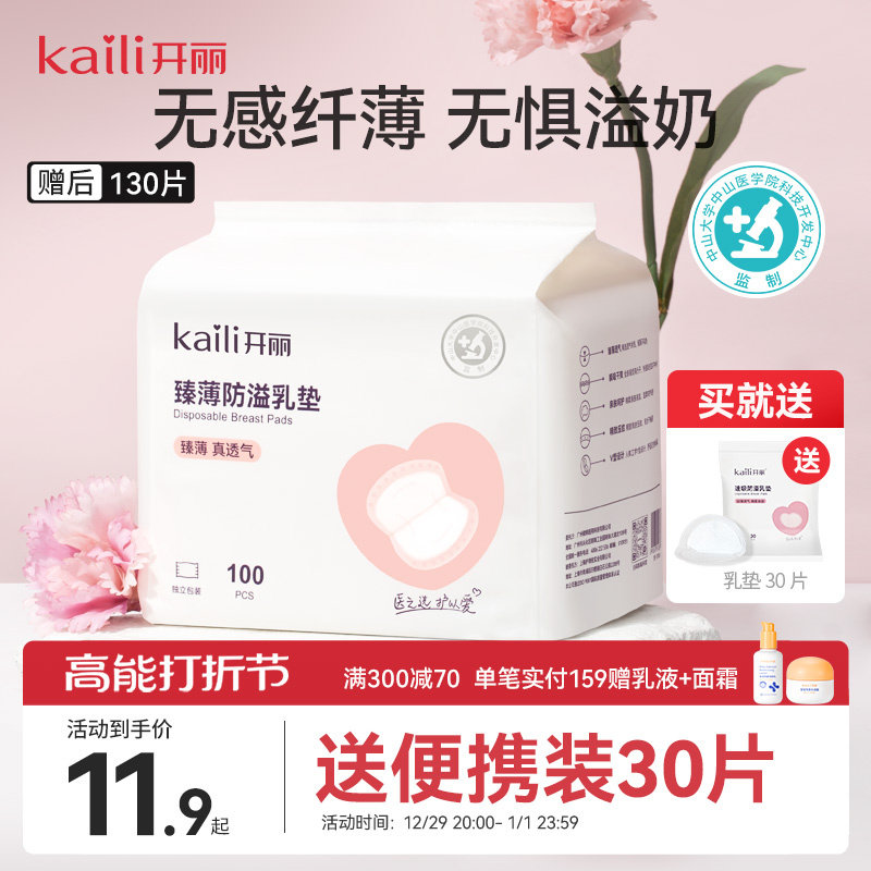 开丽防溢乳垫一次性超薄100片母乳贴防漏隔奶垫哺乳期防益乳春夏