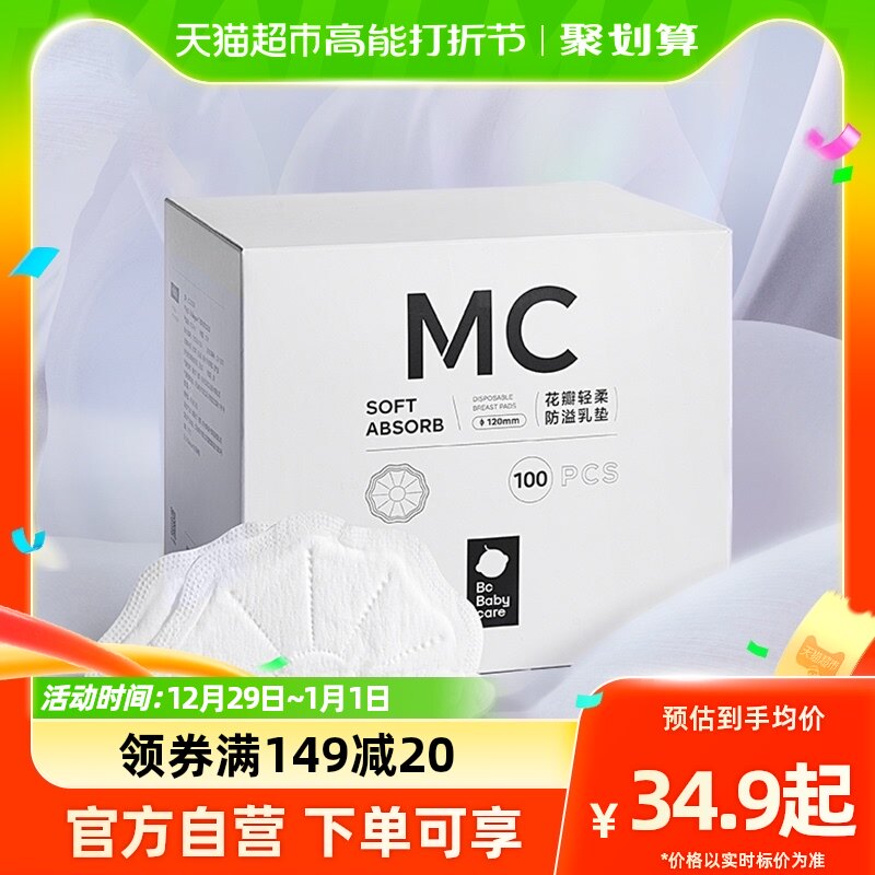 babycare花瓣轻柔防溢乳垫哺乳期产后一次性乳垫隔奶垫透气100片