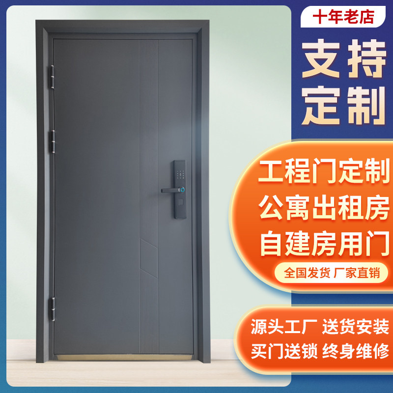 家用智能防盗门指纹密码锁入户门单开出租房进户门工程临时钢制门