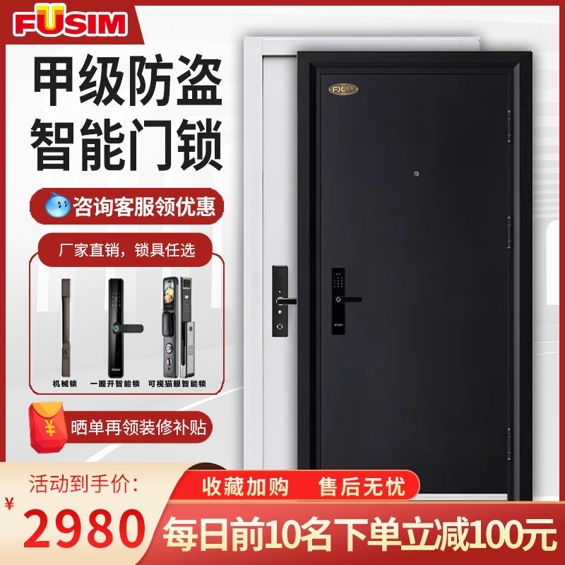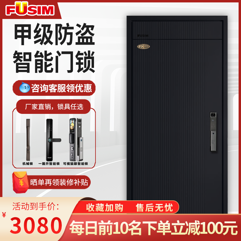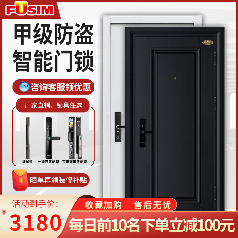 FUSIM富新旺轩防盗门智能门锁官方旗舰店轻奢入户门包安装大门