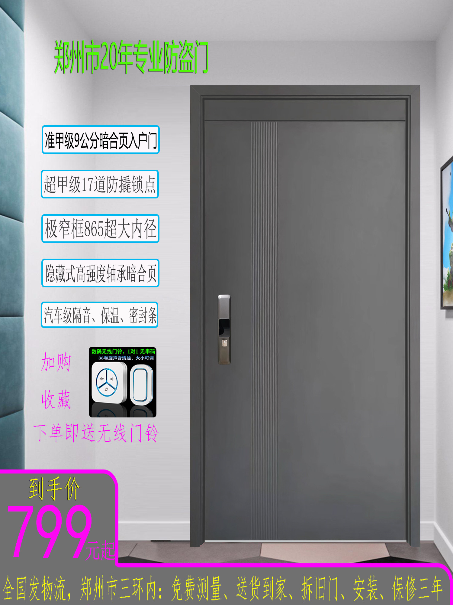 防盗门安全门家用钢制入户门指纹锁隔音进户门铁门郑州市内包安装