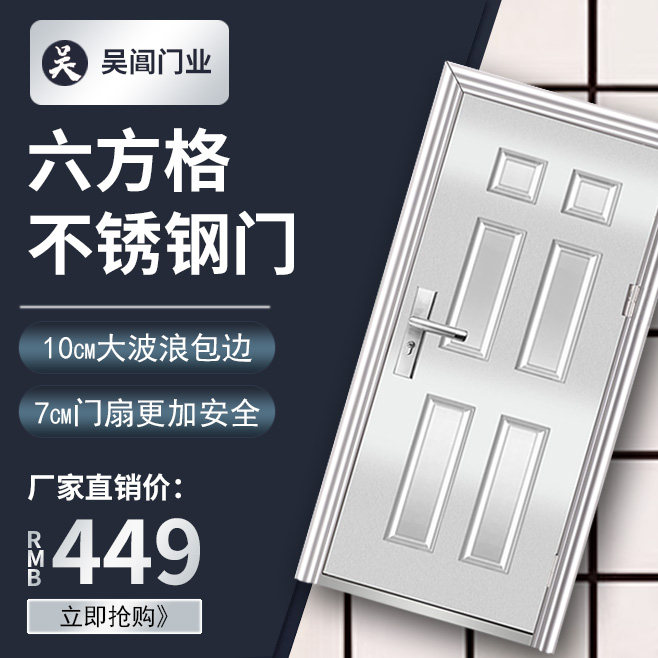 包邮六方块不锈钢防盗门现货特价板门全钢门进户门安全乡村入户门