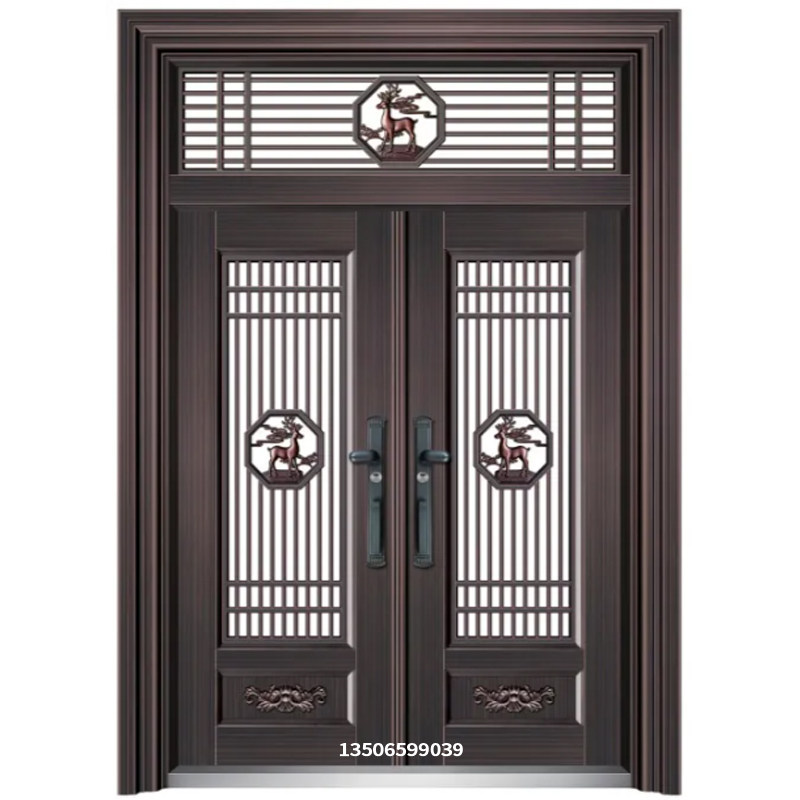 锌合金别墅玻璃大门家用铜门农村自建房双开防盗门乡村对开进户门