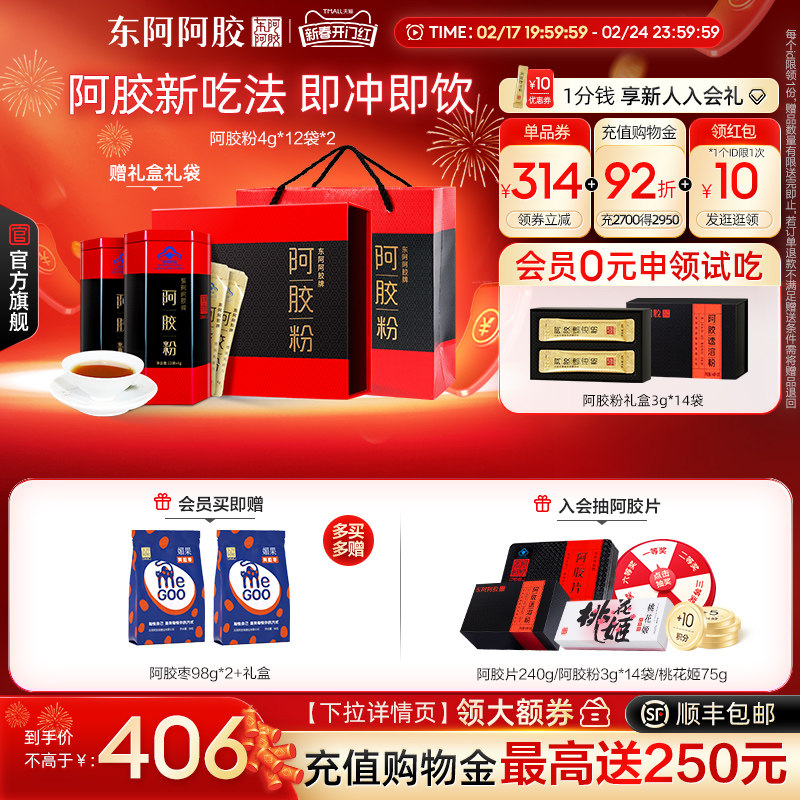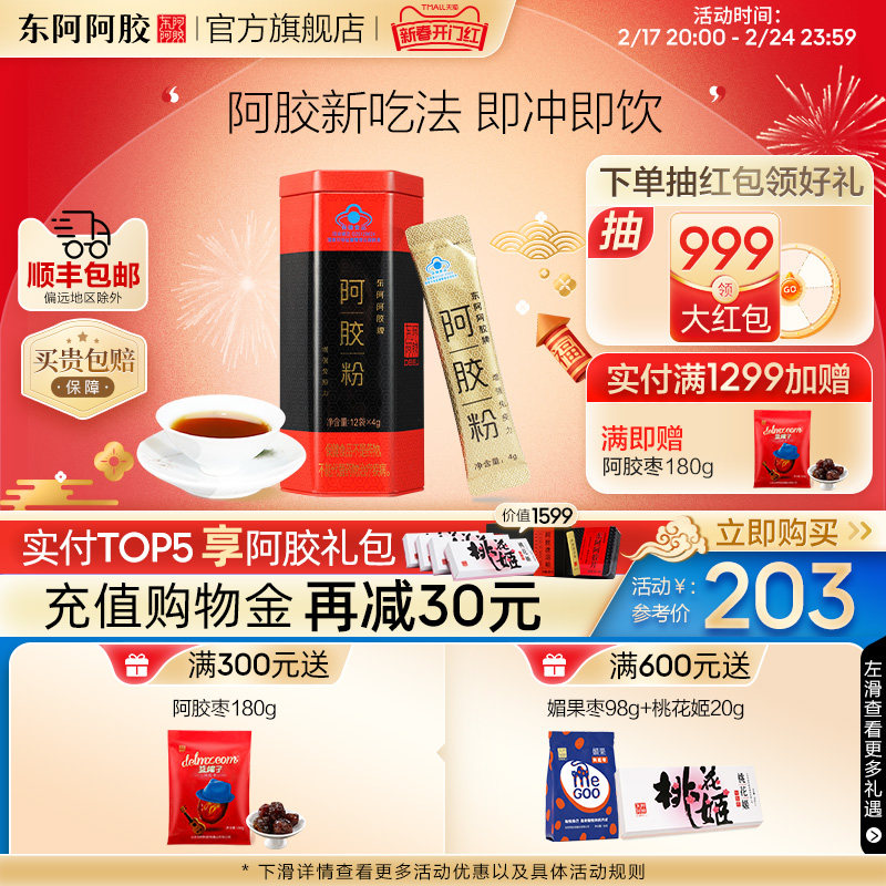 【东阿阿胶官方旗舰店】阿胶粉小金条4g*12袋礼盒原粉增强免疫力