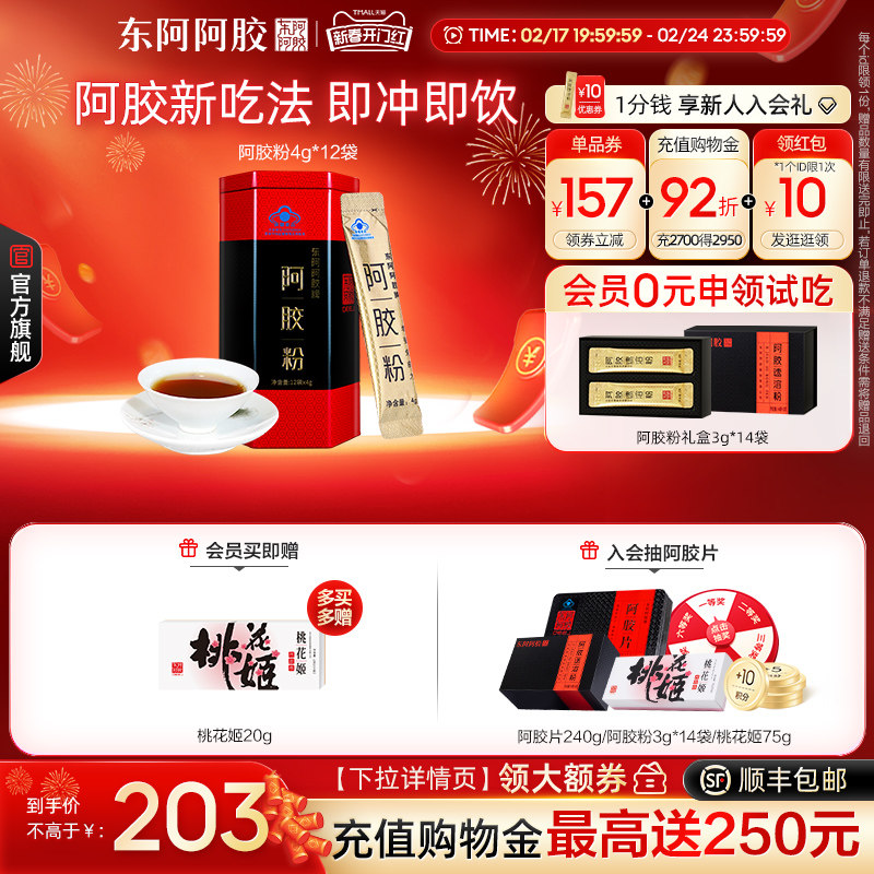 东阿纯阿胶粉速溶山东阿胶原粉冲剂调理气血固元膏官方旗舰店