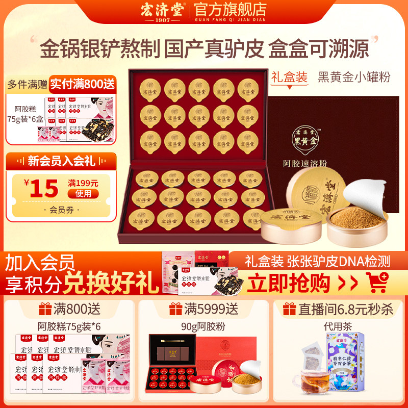 宏济堂黑黄金阿胶原粉小罐粉速溶粉正宗山东阿胶原粉纯粉商务礼盒