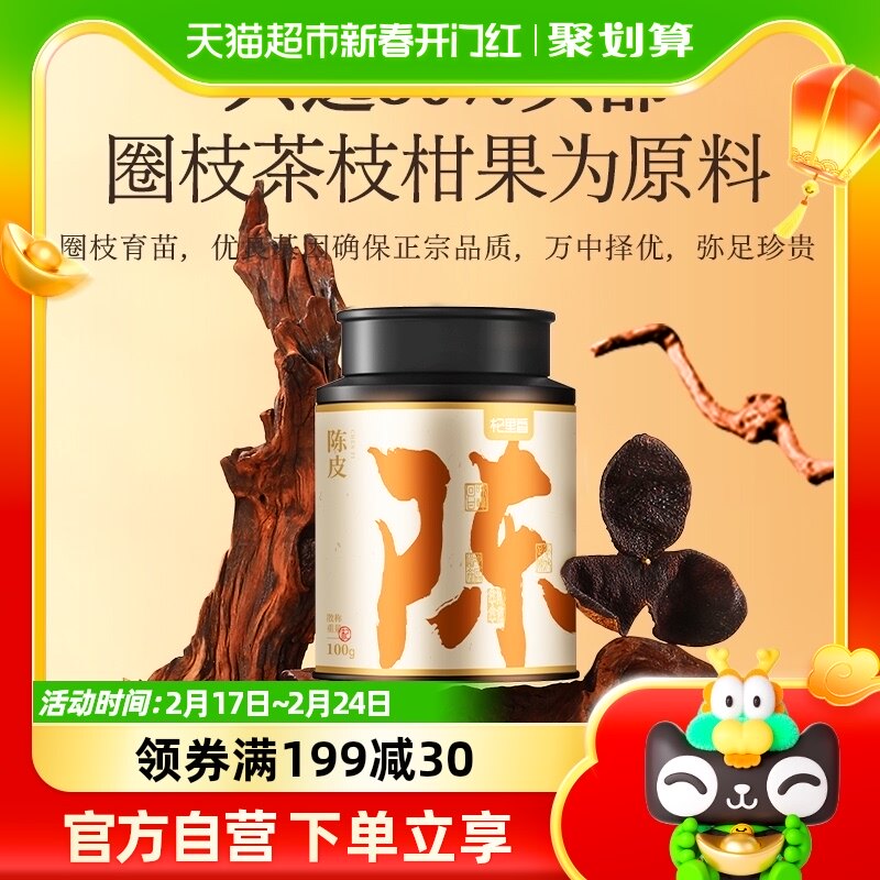 杞里香广东新会10年老陈皮干100g官方旗舰正品桔子橘橙皮泡茶水酒