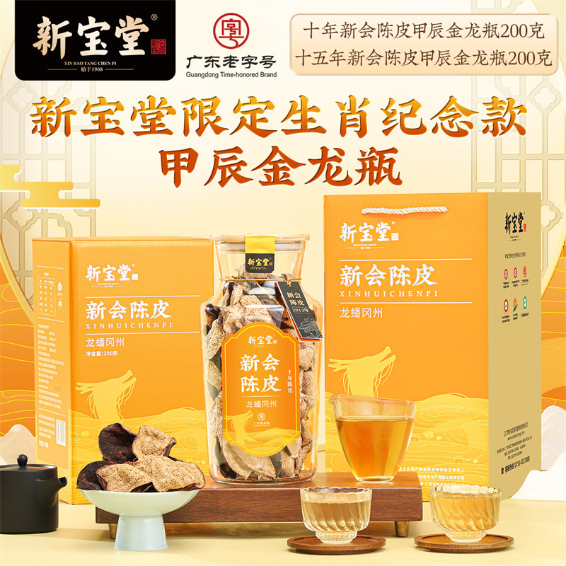 新宝堂官方旗舰店十年十五年新会陈皮甲辰金龙瓶礼盒200克/瓶