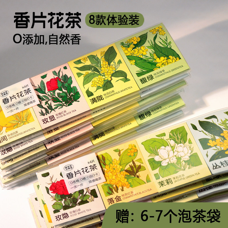 咩字号香片花茶8口味体验装茉莉花茶陈皮白茶桂花乌龙茶 茶样试喝