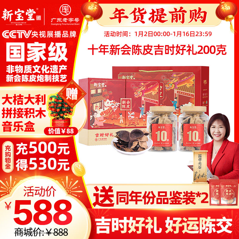 新宝堂官方旗舰店陈皮白茶年货礼盒陈皮福鼎白茶礼盒25克*10盒