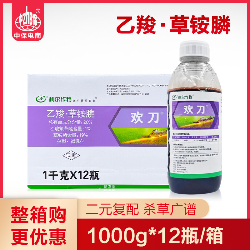 欢刀20%乙羧草胺磷正品果园草铵膦除草荒地小飞蓬农药除草剂1公斤