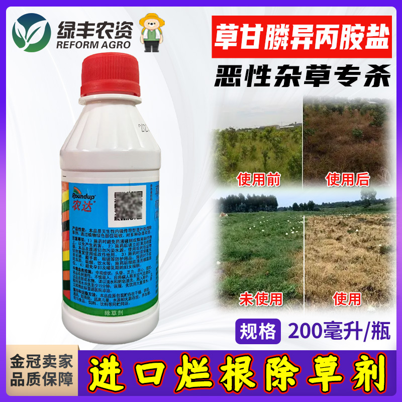 孟山都农达进口草甘膦草甘磷龙达果树田埂庭院灭生性除草剂烂根剂