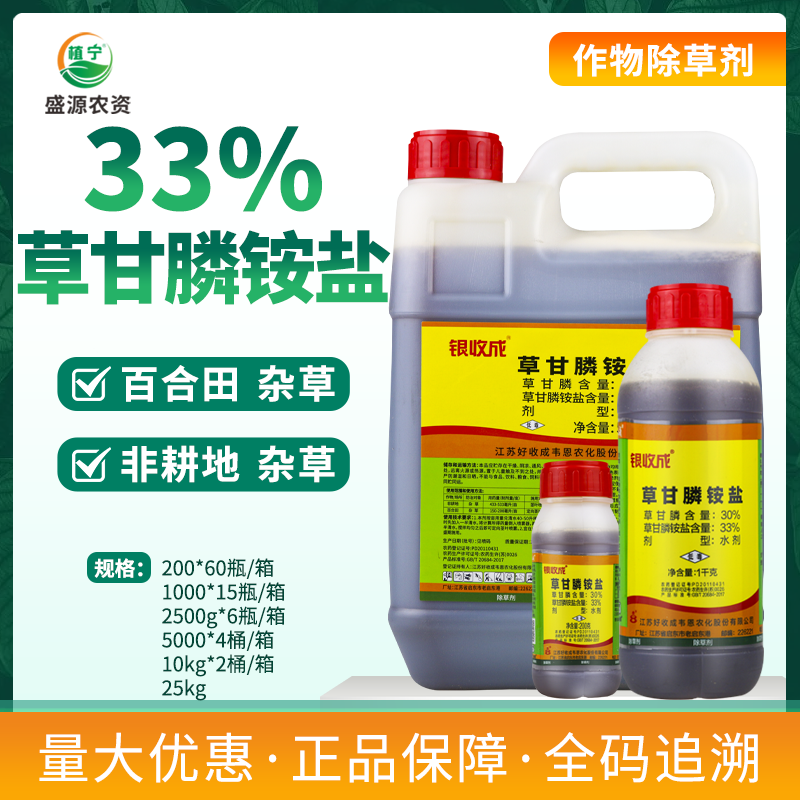 银收成 草甘膦铵盐 33%草甘膦百合田非耕地烂根杂草除草剂农药