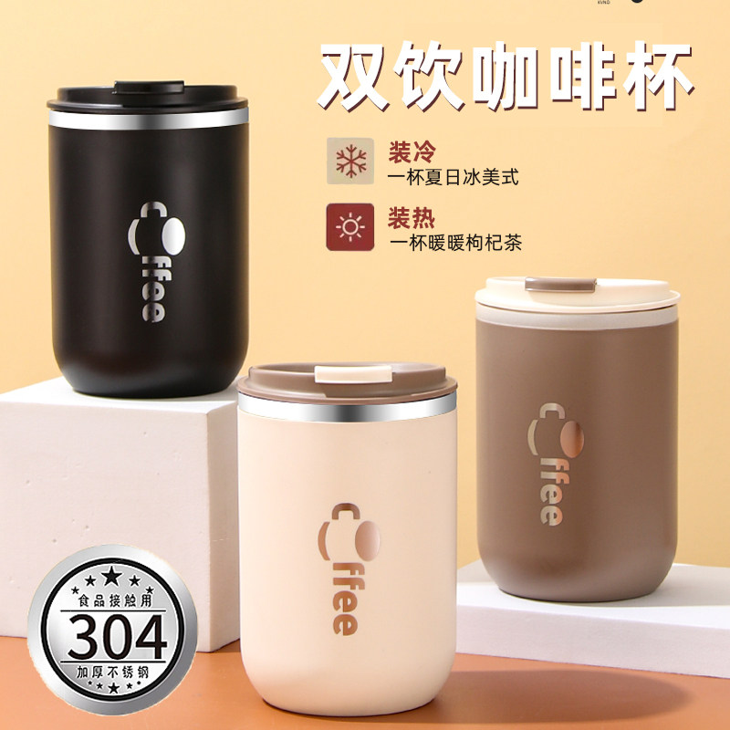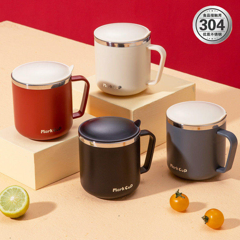304不锈钢水杯带盖防烫防摔家用马克杯学生牛奶咖啡杯办公随手杯