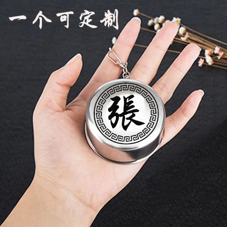 定制姓氏304不锈钢折叠水杯随身携带外出户外随手杯收缩杯喝茶。