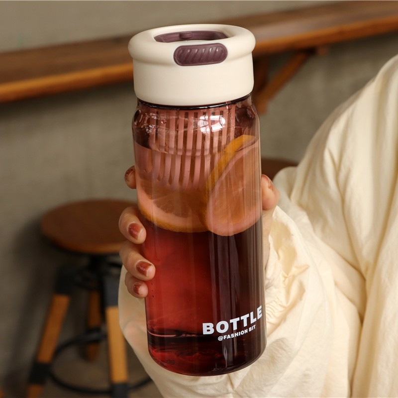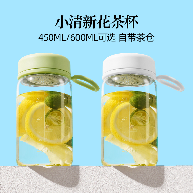 无印水杯高级感塑料带茶隔学生水杯耐高温简约豆浆杯子防摔随手杯