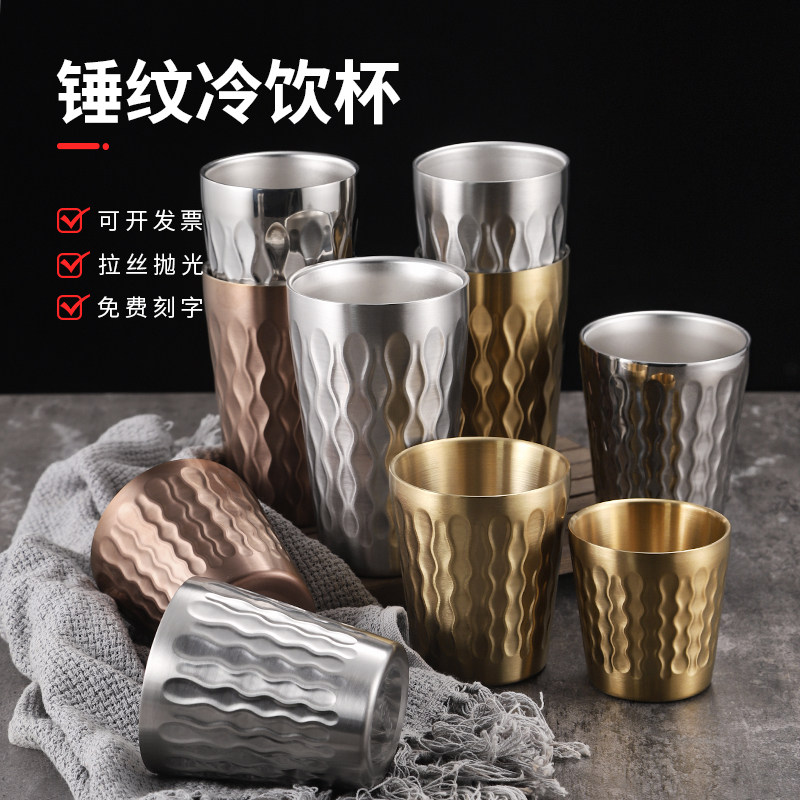 304不锈钢双层水杯餐厅防摔韩式啤酒杯茶杯果汁杯随手杯饮料杯子