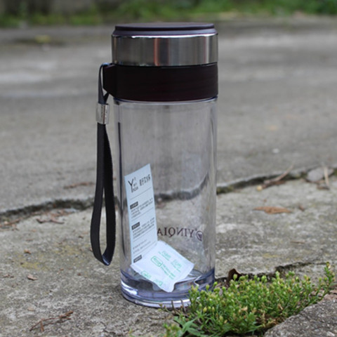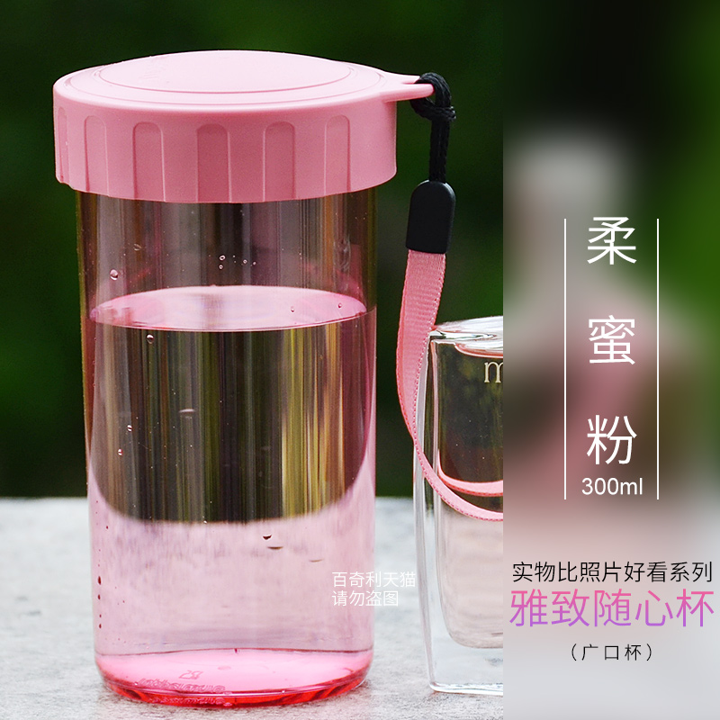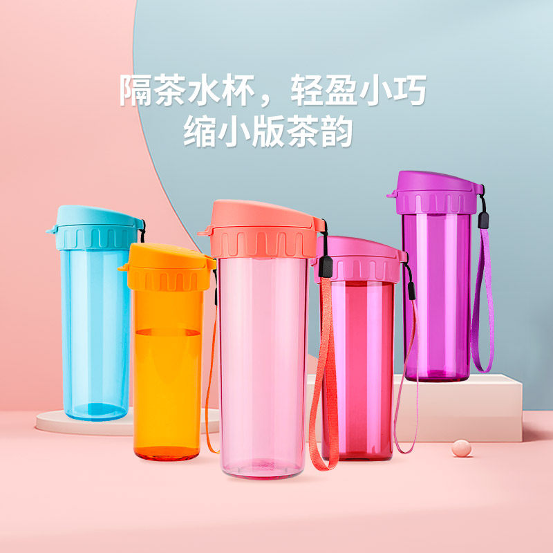 银仟塑料运动型饮水杯口杯有提绳子过滤茶杯随手杯礼品杯包邮