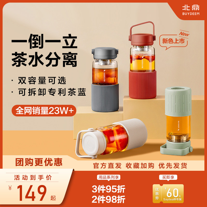 九阳茶水分离泡茶杯玻璃水杯子男女夏季新款办公室便携过滤随手杯