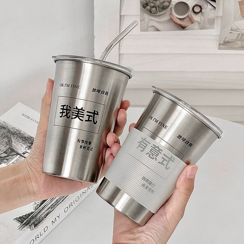 我美式咖啡杯304不锈钢随手杯ins风男女简约防摔随行杯双饮水杯子