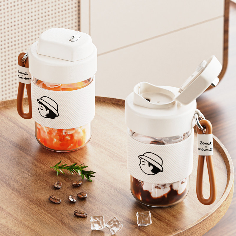 HY3高颜值女生大容量耐高温防烫提手玻璃杯可爱水杯随手咖啡杯