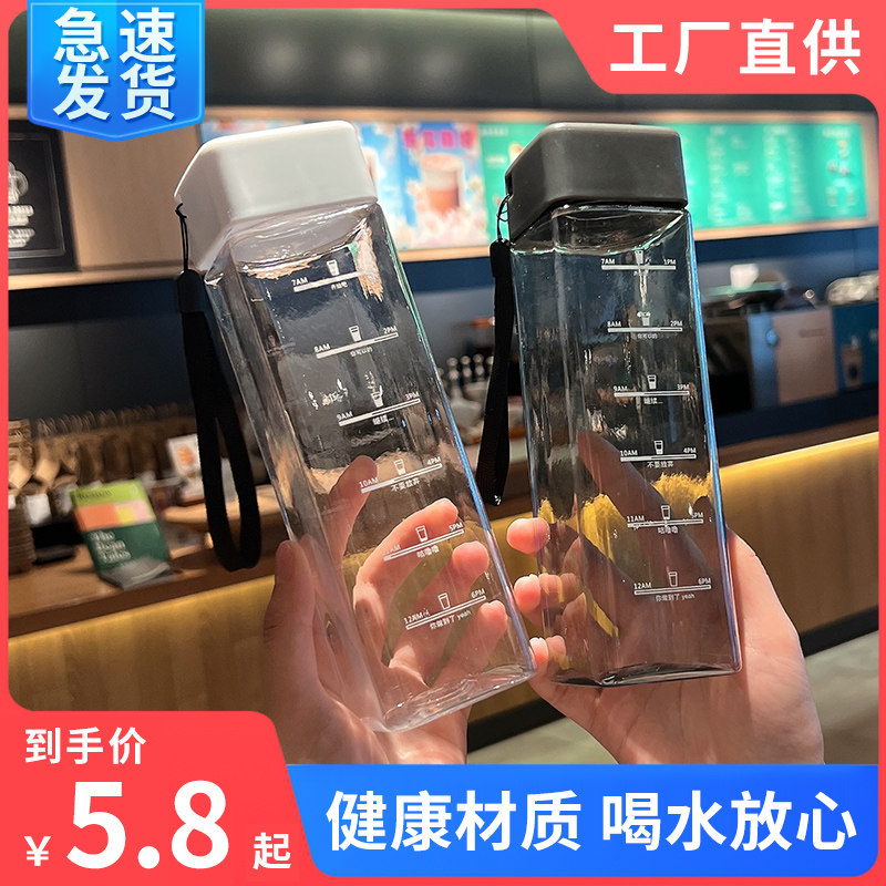 防摔刻度水杯高颜值男女士便携车载泡茶塑料学生上学专用随手杯子
