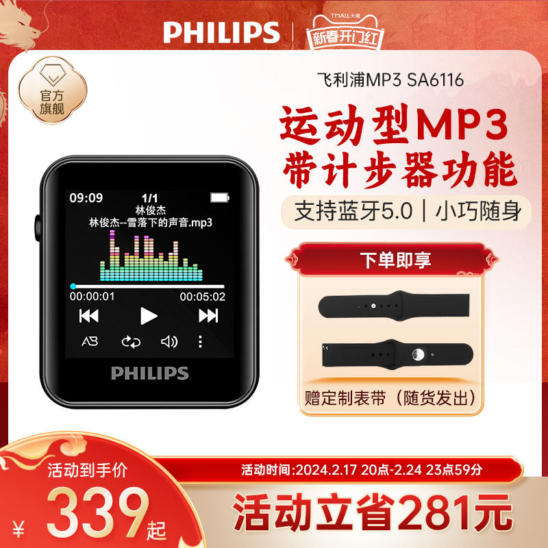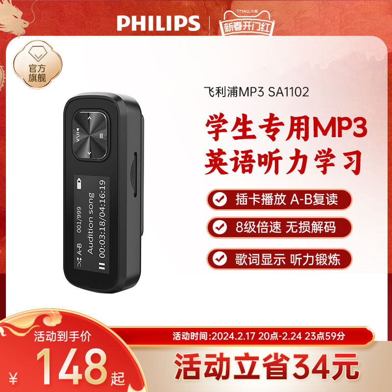 飞利浦sa1102 mp3随身听学生版便携式音乐播放器听歌专用背夹