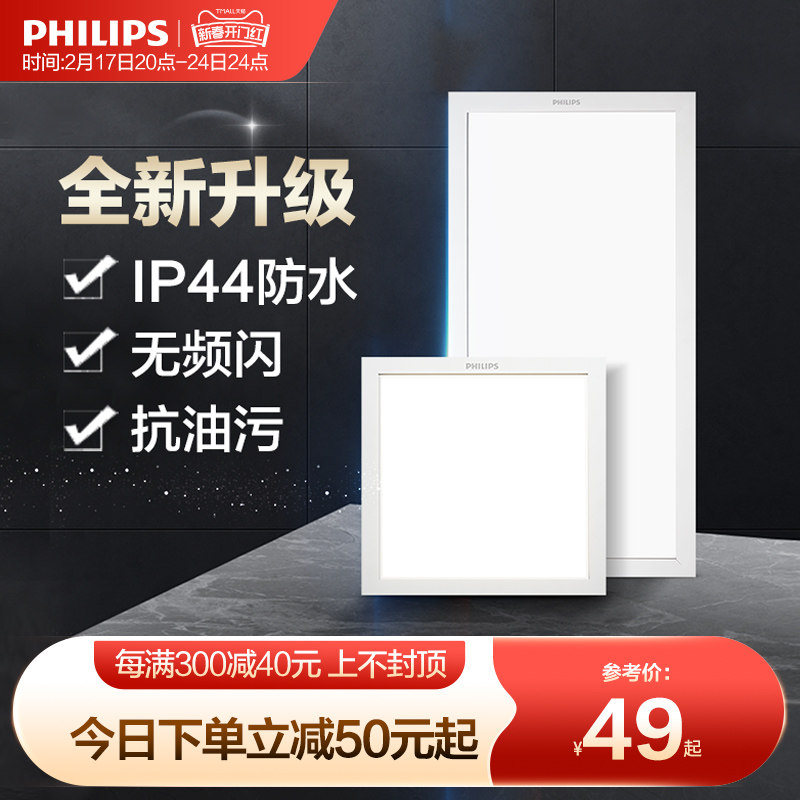 飞利浦集成吊顶led平板灯超薄嵌入式铝扣厨房卫生间面板灯300*600