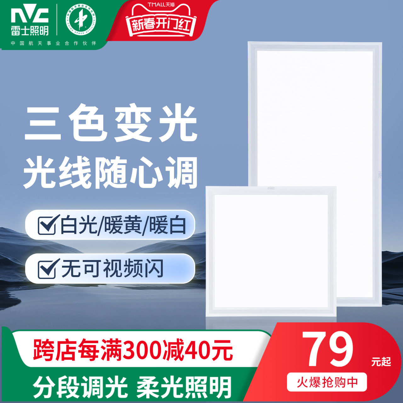 雷士照明集成吊顶嵌入式厨房平板灯铝扣板卫生间三色调光面板灯