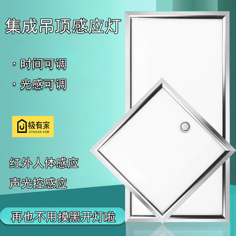 集成吊顶感应面板灯 LED可调人体红外线卫生间过道智能声控平板灯