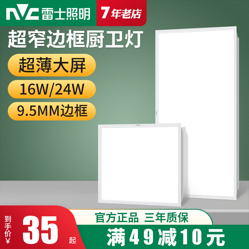 雷士照明led集成吊顶灯嵌入式铝扣板灯厨房浴室卫生间平板吸顶灯