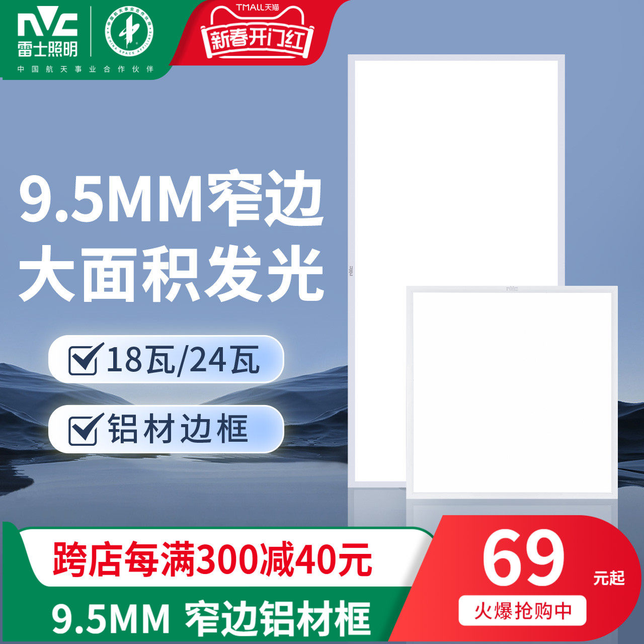 雷士照明智能平板灯300x600铝扣板集成吊顶灯led吸顶灯厨卫面板灯